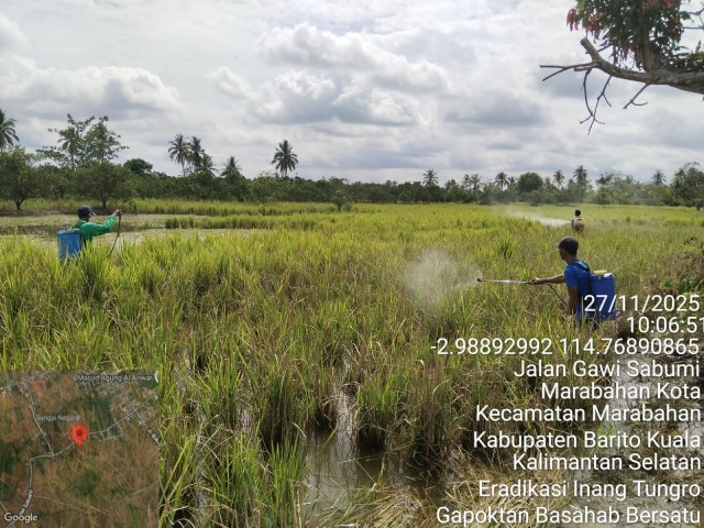 Gerdal OPT (Tungro) Eradikasi Inang Padi Lokal MH 2025/2026 di Kelurahan Marabahan Kota Kecamatan Marabahan