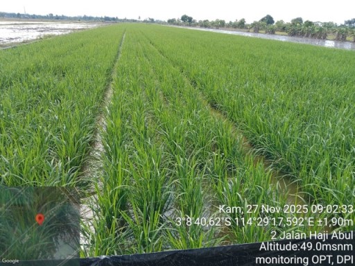 Pengamatan OPT-DPI Padi Unggul MH 2025/2026 di Desa Roham Raya Kecamatan Wanaraya. Tanaman padi unggul varietas inpari 42. Umur 14... selengkapnya