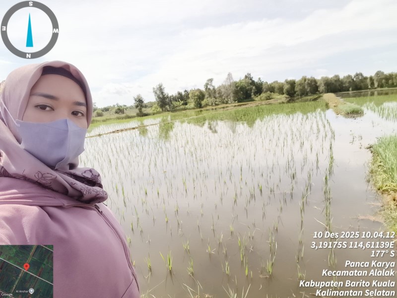 Pengamatan OPT-DPI Padi Unggul MH 2025/2026 di Desa Panca karya Kecamatan Alalak