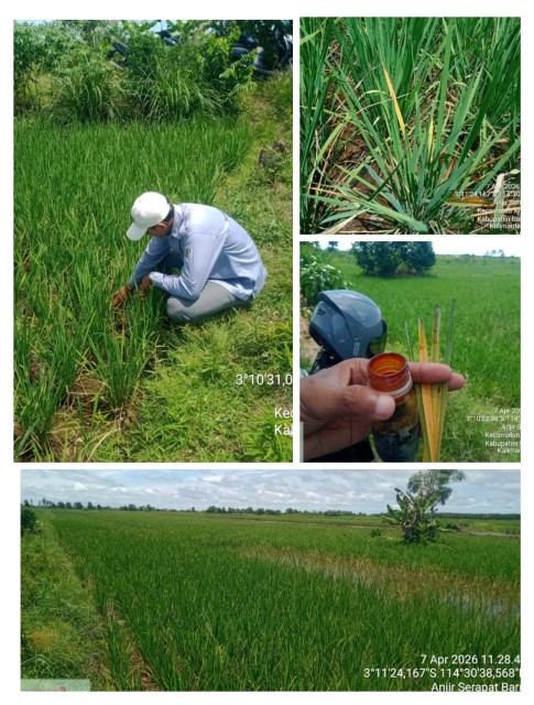 Pengamatan OPT (Tungro) Padi Lokal Siam MK 2026 di Desa Anjir Serapat Baru Kecamatan Anjir Muara