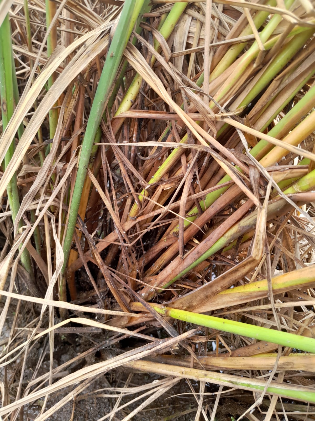 Pengamatan OPT (WBC) pada Padi Unggul MH 2023/2024di Desa Karang Buah Kecamatan Belawang. Tanaman yang terserang dipanen dan dilakukan pengendalian dengen menggunakan insektisida, varietas siam madu.